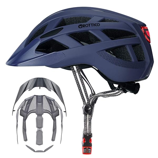 - Adult-Men-Women Bike Helmet with Light - Mountain Road Bicycle Helmet with Replacement Pads & Detachable Visor: reliable performance and quality- SAFETY - This GROTTICO bike helmet meets US & EU cycling standards.- ADJUSTABLE DIAL & STRAPS - The adjustable fit system for men and- INTEGRATED SAFETY REAR LIGHT - Bicycle helmet with USB rechargeable- TOUGH & LIGHTWEIGHT - Integrated forming a tough polycarbonate outer
