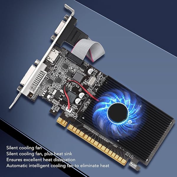 - GT210 Graphics Card, 1GB DDR3 64 Bit PC Video Cards, PCI Express X16, Single Fan Air Cooling, Supports VGA DVI HD Multimedia Interface offers reliable performance and quality- LOW NOISE: The desktop graphics card features low noise and quiet work for your convenience, while working at a lower temperature and higher efficiency- 1GB GDDR3: The card is equipped with 1. high speed GDDR3 memory and 1GB 64bit video memory with a core frequency of 589MHz