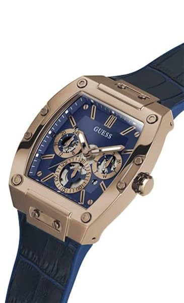 - GUESS Mens 43mm Watch - Blue Strap Blue Dial Brown Case offers reliable performance and quality- 8 inch blue strap- 43mm brown case- GUESS Watches has stood the test of time, with an unwavering commitment to designing watches that not only keep pace with fashion, but also set the standard for it- We are The Authority in fashion-forward timekeeping for those who demand sophistication and statement styling in every moment