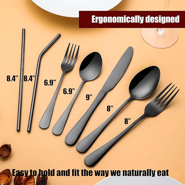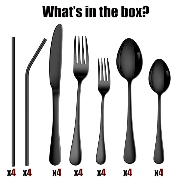 - Gutuwellea 28 Pieces Black Silverware Service for 4 Flatware Set Stainless Steel Utensils Cutlery Set Dishwasher Safe offers reliable performance and quality- Stylish and durable design - this silverware set is crafted by superior quality rust-resistant stainless steel, strong enough to withstand the rigors of everyday use; these kitchen utensils are also easy to maintain and made to last