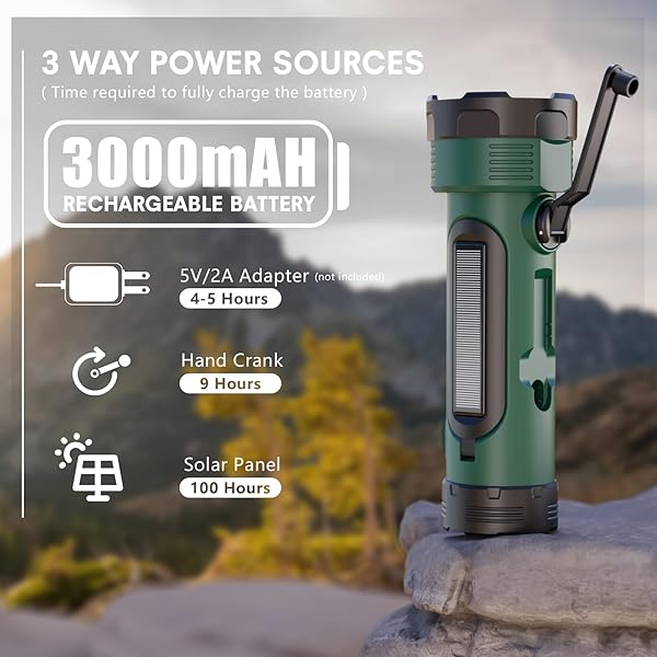 - Hand Crank Flashlight, 3000mAh NOAA Weather Radio Flashlights with 3 Way Power Sources, Wind Up Flashlight Hand Crank Cell Phone Charger, Portable Radio AM/FM with Reading Lamp for Emergency/Outdoor with reliable performance and quality- [NOAA EMERGENCY WEATHER RADIO] Equipped with a telescopic antenna and built-in professional speakers, the device reliably receives the latest emergency weather forecasts and emergency news broadcasts from NOAA and AM/FM radio stations in power-on