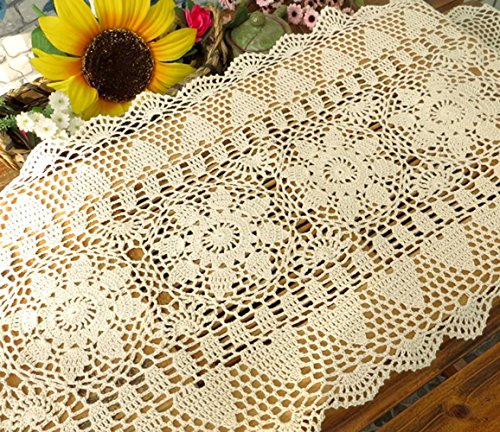 - Laivigo Handmade Crochet Lace Table Cloth Doilies Doily,Rectangle,16 x 35 Inch,Beige offers reliable performance and quality- Material : 100% Cotton, washable and reusable,no fading after washing- Size: 40 x 90cm/ 16 x 35 Inch (L x W); Dimensions may vary slightly within 5%-8% due to its nature of hand crochet process- Suitable for indoor decoration, put on desk, dinner table, computer desk, sofa, coffee table?lampshade, DIY accessories, etc