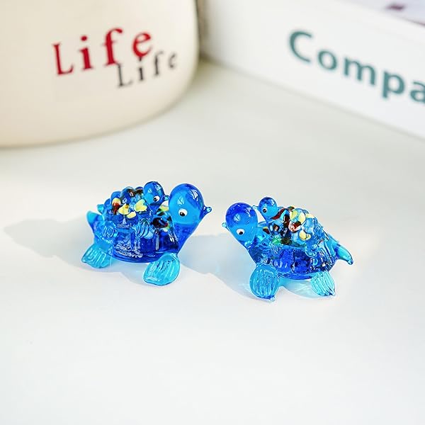 - HDCRYSTALGIFTS 2.5'' Blown Glass Sea Turtle Figurines Gift for Women, Handmade Glass Sea Animals Collection, Dollhouse Miniatures offers reliable performance and quality- Hand-blown Glass- each glass sea turtle is a unique work of art, with no two exactly alike- Good Meaning - A symbol of good fortune and safe travels, this sea turtle brings positive vibes to any space