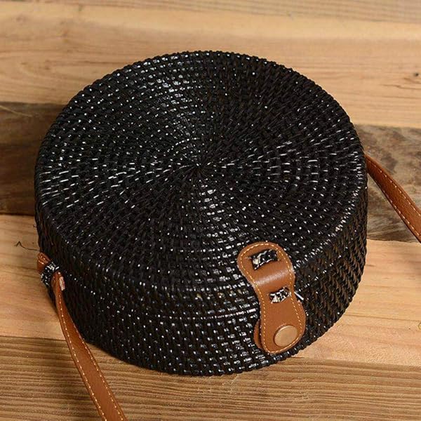 - Kbinter Handwoven Round Rattan Straw Bag for Women Shoulder Leather Button Straps Natural Chic Handmade Boho Bag Bali Purse, Black, Large offers reliable performance and quality- TOP 10 HIT BAGS FOR WOMEN: Our uniquely designed round rattan bag is a must have for any fashionista; a stunning blend of old traditions and new fashion that will inspire your overall look with an artisanal sensibility