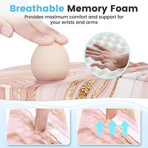- HAOCOO Keyboard Wrist Rest, Ergonomic Mouse Pad with Wrist Rest, 3 in 1 Keyboard and Mouse pad with Coaster Set, Memory Foam Wrist Support, Non-Slip PU Base for Home Office, Rose Gold Pink with reliable performance and quality- Improved Ergonomic Design: The rose gold mouse pad with wrist rest and wrist pad for keyboard adopts 100% memory foam. Not easy to deform or infiltrate over time like a gel. 8-degree slope keep wrist maintaining in proper alignment. The wrist can be fully s