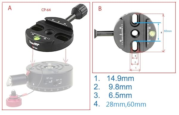- Haoge 64mm Screw Knob Clamp Adapter Mount for Quick Release QR Plate Camera Tripod Ballhead Monopod Ball Head Fit Arca Swiss provides reliable performance and quality- The Haoge 64mm (2.52") Discal Clamp is a Arca Swiss compatible screw knob clamp.- It has a captive knob, safety-stop grooves, and a hollowed-out design that reduces the weight of the clamp.