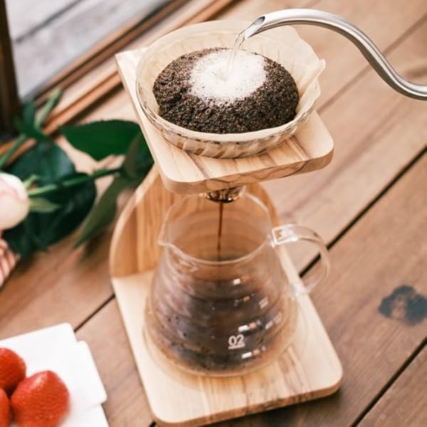 Hario V60 Olive Wood Pour Over Stand Set for Perfect Coffee Brewing at Home