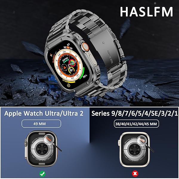 - HASLFM Metal Case and Bands Compatible with Apple Watch Ultra 2/Ultra,Stainless Steel Strap and Protector Cover for iWatch,Men Watch Strap for Apple Watch 49mm (Grey) with reliable performance and quality- CompatibilityHASLFM stainless steel bands with case fit for Apple watch Ultra 2/Ultra(49mm), please choose the proper sizes for your watch. With exquisite appearance design, the watch cover and band looks classic, perfect for indoor and outdoor activities.(WATCH NOT INCLUDED)</l