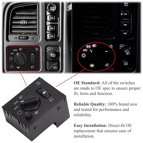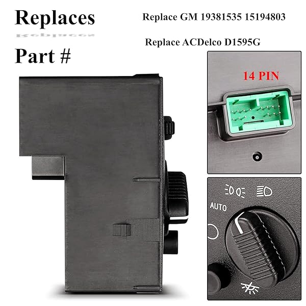 * Headlight Switch - Compatible with 2003-2006 Chevy Silverado Suburban Tahoe Avalanche GMC Sierra Yukon Cadillac Escalade Headlamp Dimmer Switch Replace# 19381535: oe standard * The headlight instrument panel dimmer is designed and manufactured to be identical in fit and performance to the original equipment they replace * OE connector helps ensure a solid * Positive connection * All markings and controls on the switch are identical to the factory part