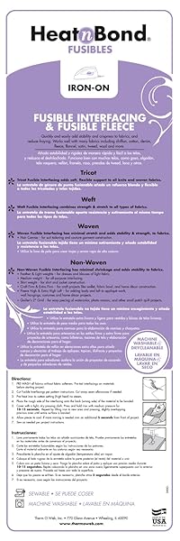 - HeatnBond Fusible Fleece Iron-On Interfacing, 20 Inches x 1 Yard, White provides reliable performance and quality- Designed for added body, padding and support- Ideal support for hand bags tote bags, beach bags and purses- Ideal for creating home dcor project requiring added body and support- Needle-Punched Fleece; 100% Polyester; Fusible; White
