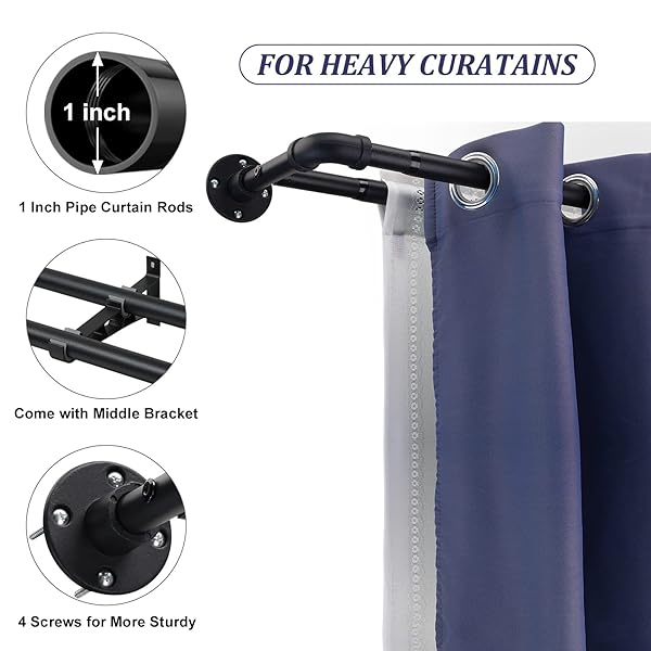 - Double Curtain Rod - Heavy Duty Blackout Double Curtain Rods for Windows 66 to 120 inch, Industrial Wrap Around Curtain Rod Black for Sliding Door, for Sheer Curtains & Drapes, Telescoping Adjustable offers reliable performance and quality