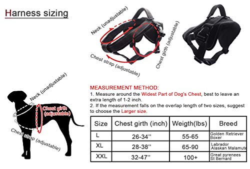 - Heavy Duty Dog Harness for Large Dogs, No Pull Dog Vest Harness with Handle Extensible, Reflective Stitching (XXL) offers reliable performance and quality- EXTRA DURABLE HARNESS - Fit dogs with 32-47 inch chest (Measure the widest part of the dog's chest, choose the larger size if fall between two sizes). Made with super durable Nylon, wear resistant and weatherproof. 450 lb pulling resistance. Ideal for hard pullers dogs