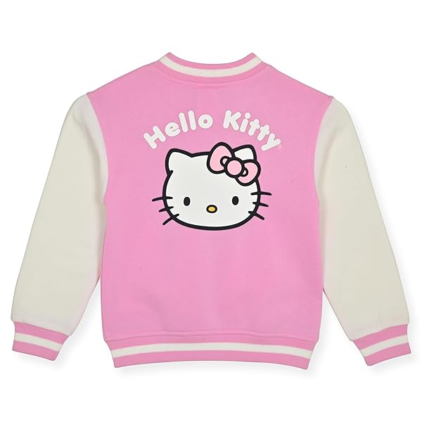 * Hello Kitty Girls Varsity Button Front Letterman Bomber Jacket for Kids, Bonbon Pink: description * Introducing the ultimate blend of style and comfort for the young Hello Kitty enthusiast: the Hello Kitty Girls Varsity Jacket * This chic letterman bomber jacket is the perfect addition to your little one's wardrobe * Combining the timeless appeal of varsity jackets with the adorable charm of Hello Kitty * Fit for Every Fan: Available in sizes 4-10