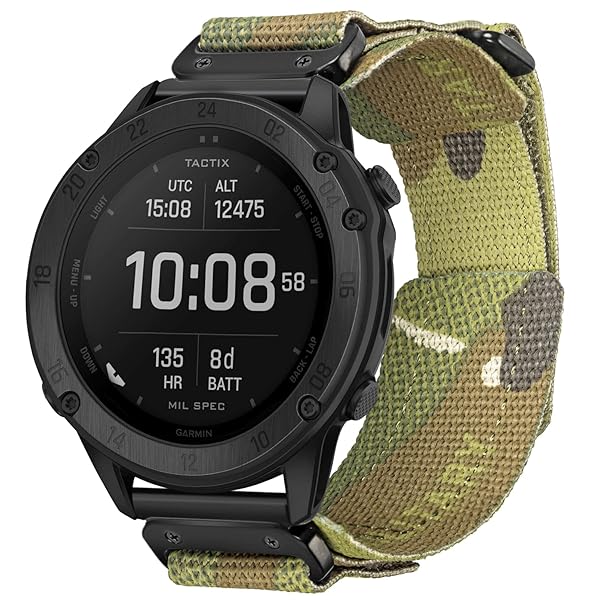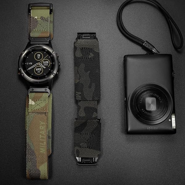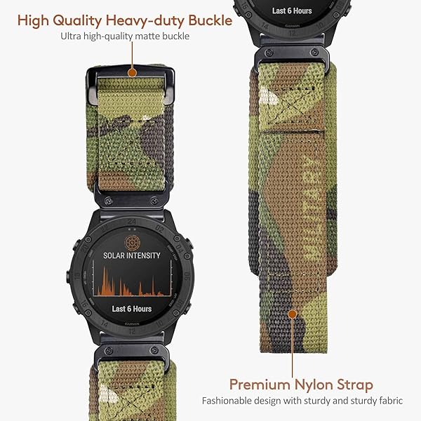 - Compatible With Garmin, Watch Band, Camouflage Super Rugged Nylon Sports Strap With Woven Loop Design, For fnix/Forerunner/Vivoactive/Approach/MARQ/quatix/D2 Series Tough Replacement Band For Men with reliable performance and quality- Sporty and Heavy Duty Style Watch Bands for Garmin WatchesCompared to other straps, the new upgraded design of the connector will make you fall in love with the process of snap on/off. very strong and durable, fits for heavy duty activity. wear it at