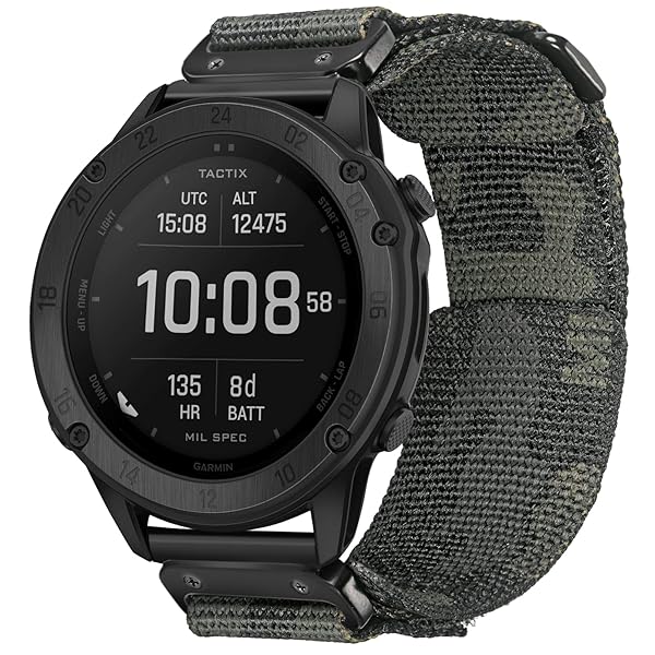 - Compatible With Garmin, Watch Band, Camouflage Super Rugged Nylon Sports Strap With Woven Loop Design, For fnix/Forerunner/Vivoactive/Approach/MARQ/quatix/D2 Series Tough Replacement Band For Men with reliable performance and quality- Sporty and Heavy Duty Style Watch Bands for Garmin WatchesCompared to other straps, the new upgraded design of the connector will make you fall in love with the process of snap on/off. very strong and durable, fits for heavy duty activity. wear it at