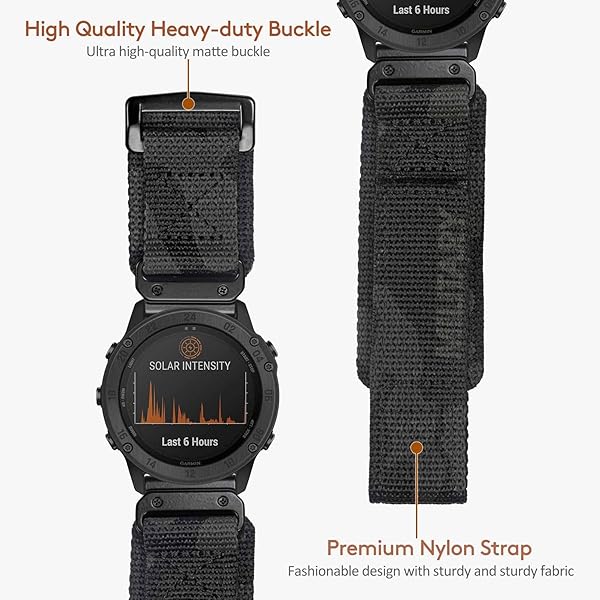- Compatible With Garmin, Watch Band, Camouflage Super Rugged Nylon Sports Strap With Woven Loop Design, For fnix/Forerunner/Vivoactive/Approach/MARQ/quatix/D2 Series Tough Replacement Band For Men with reliable performance and quality- Sporty and Heavy Duty Style Watch Bands for Garmin WatchesCompared to other straps, the new upgraded design of the connector will make you fall in love with the process of snap on/off. very strong and durable, fits for heavy duty activity. wear it at