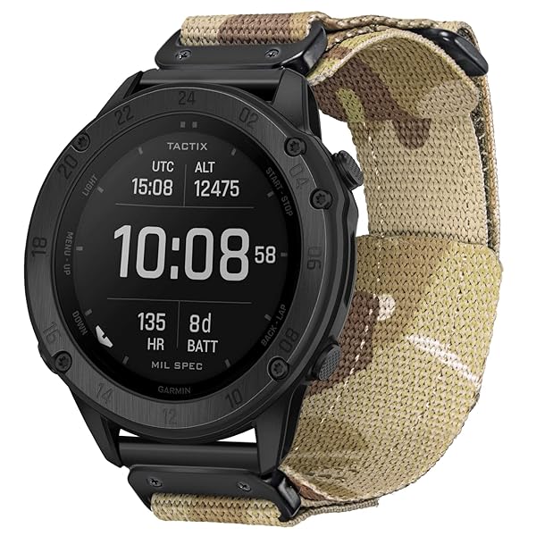 - Compatible With Garmin, Watch Band, Camouflage Super Rugged Nylon Sports Strap With Woven Loop Design, For fnix/Forerunner/Vivoactive/Approach/MARQ/quatix/D2 Series Tough Replacement Band For Men with reliable performance and quality- Sporty and Heavy Duty Style Watch Bands for Garmin WatchesCompared to other straps, the new upgraded design of the connector will make you fall in love with the process of snap on/off. very strong and durable, fits for heavy duty activity. wear it at
