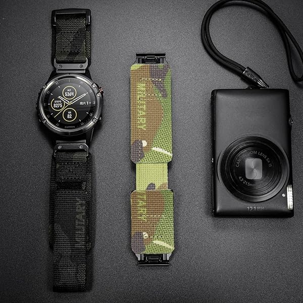 - Compatible With Garmin, Watch Band, Camouflage Super Rugged Nylon Sports Strap With Woven Loop Design, For fnix/Forerunner/Vivoactive/Approach/MARQ/quatix/D2 Series Tough Replacement Band For Men with reliable performance and quality- Sporty and Heavy Duty Style Watch Bands for Garmin WatchesCompared to other straps, the new upgraded design of the connector will make you fall in love with the process of snap on/off. very strong and durable, fits for heavy duty activity. wear it at