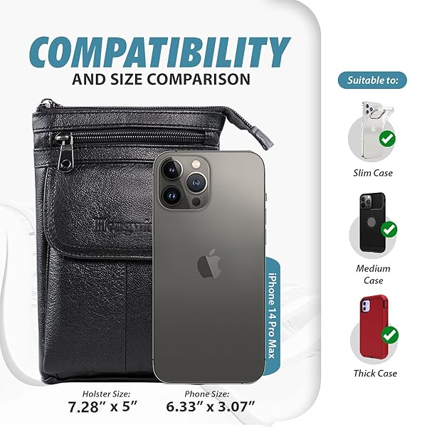 - Hengwin Genuine Leather Small Crossbody Purse for Men Women, Travel Passport Wallet Cell Phone Shoulder Holster Belt Pouch Messenger Bag offers reliable performance and quality- Material: Genuine Leather Materials and Smooth Polyester Fiber inner.Strong stitching, nice look. Size approximately 7.28 x 5 x 1 inches, The Detachable Shoulder Strap is Adjustable:the full length 72 cm