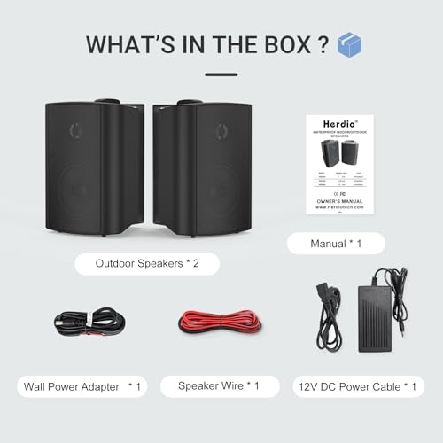 - Herdio 4 Inch Outdoor Bluetooth Speakers Waterproof Wired 200 Watt,Indoor, Patio,Deck Wall Mount Speakers (Black) offers reliable performance and quality- Product Full Range Stereo Sound: Achieve crisp sounds covering the entire audio spectrum! Fill your area with clean highs, while feeling the deep bass response from the articulated sound enclosure