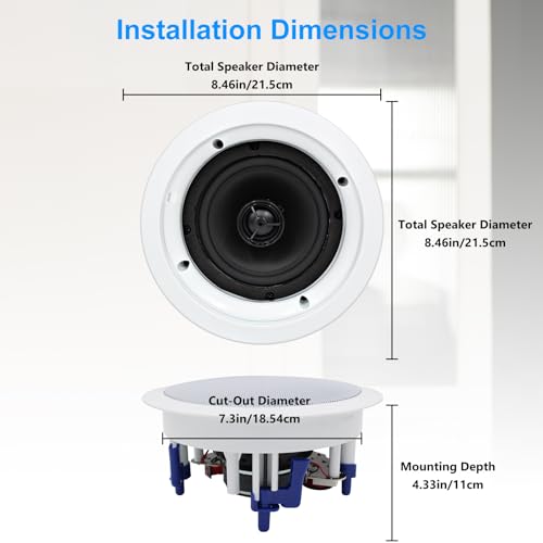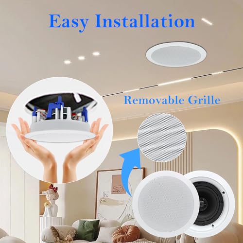 - Herdio in Ceiling Speakers 2 Way 5.25" 600 Watts Passive Wired Flush Mount for Home Theater Living Room Office Covered Porches(2Pairs, Paintable-Grille) provides reliable performance and quality- Superior SoundThe 1-inch silk dome tweeter generates abundant detail and clarity.The 5.25 inches woofer is capable of excellent bass output.Integration between tweeter and woofer ensures coherent t...