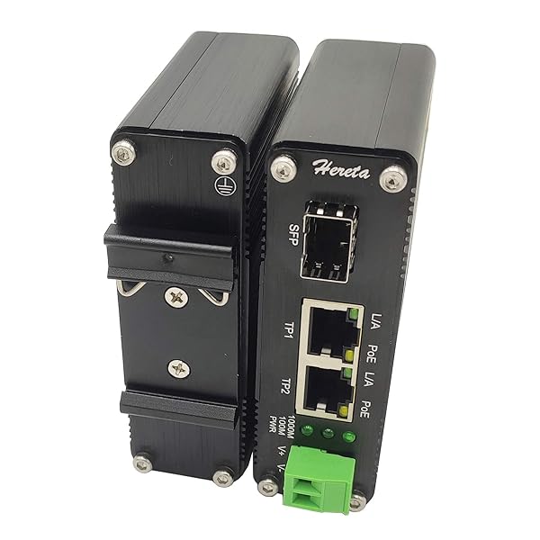 Hereta Gigabit Industrial Ethernet Media Converter POE+ 30W - 2 RJ45 & 1 SFP Port, Aluminum Case, 12-48V DC Input