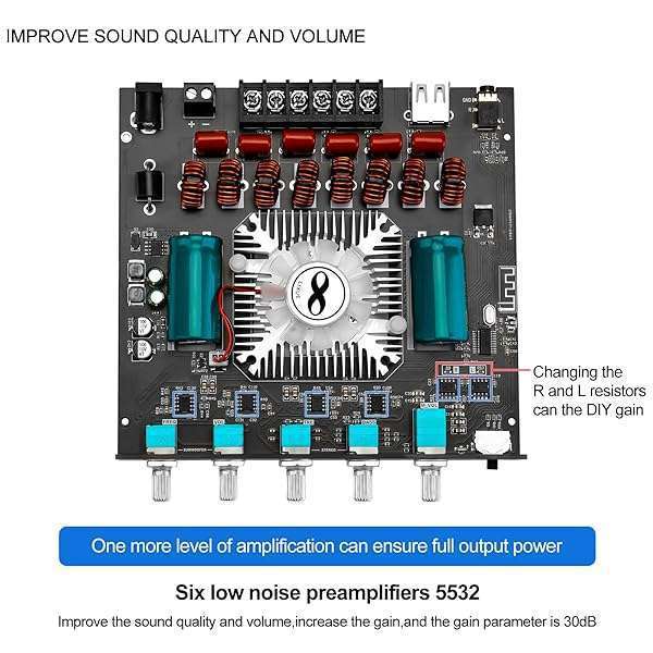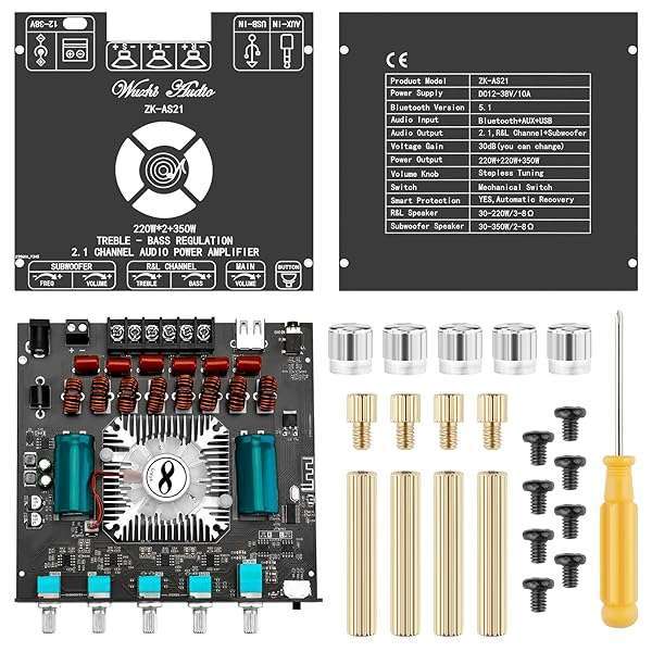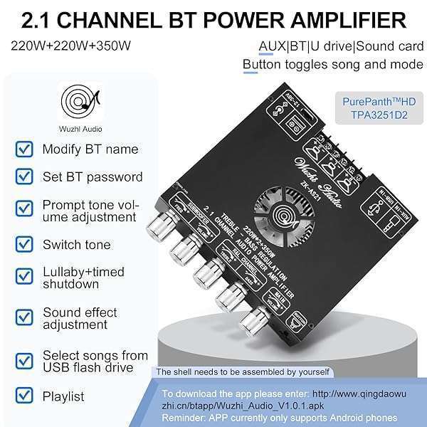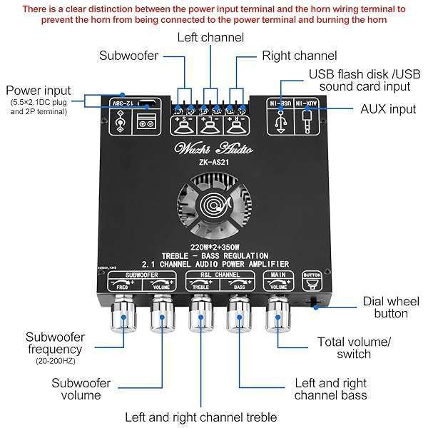 * Bluetooth Power Amplifier Board Stereo - HiFi 2.1 Channel 2X220W+350W Bluetooth 5.1 16-32V Digital Power Audio Amplifier Module Subwoofer Control with AUX/Bluetooth/USB Flash Drive (ZK-AS21): hi-fi & stereohigh quality 2.1 channel 220w+220w+350w bluetooth 5.1 power amplifier board * With AUX * Bluetooth * U disk * USB sound card a variety of audio input methods