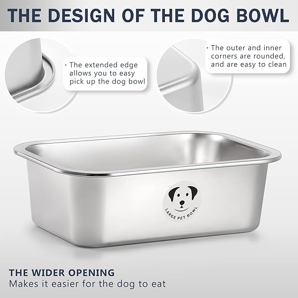 - Stainless Steel Dog Bowls for Large Dogs, High Capacity Metal Dog Food Bowls, Food and Water Bowl for Larges, X-Large, and Big Dogs 1.25 Gallons offers reliable performance and quality- Large Capacity: The stainless steel metal dog bowl is specially designed for large, X-large, and huge dog breeds. The L dog bowl holds 1.25 US gallons (4731ml), and the XL holds 2.65 US gallons 10031ml). 1 bowl can be used for two feed as dog food bowl and water bowl