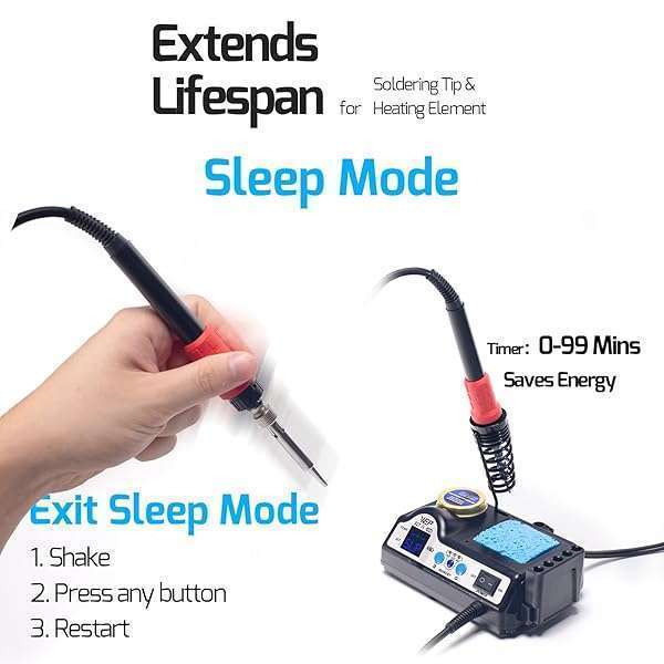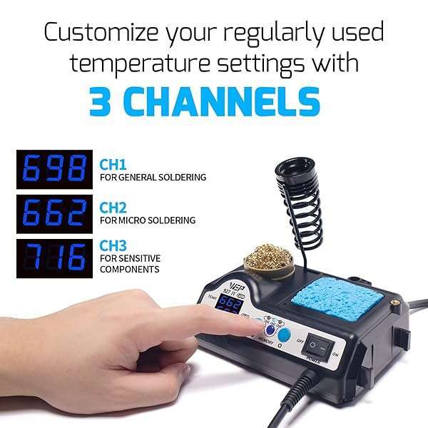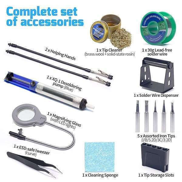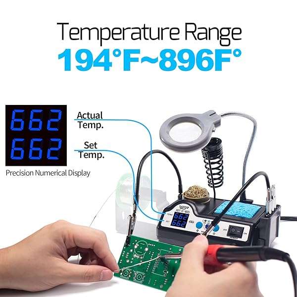 * WEP 927-IV Soldering Station Kit High-Power 110W with 3 Preset Channels, Sleep Mode, LED Magnifier, 5 Extra Iron Tips, Tip Cleaner, 2 Helping Hands, Tip Storage Slots, Lead-free Solder Wire, Tweezers: high-power performance: this soldering iron kit's 110w heating element allows the soldering iron to heat up fast * You can set your desired temperature from 90C~480C(194F~896F) * Precise double numerical display presents the set temperature and actual temperature at the same time for you to
