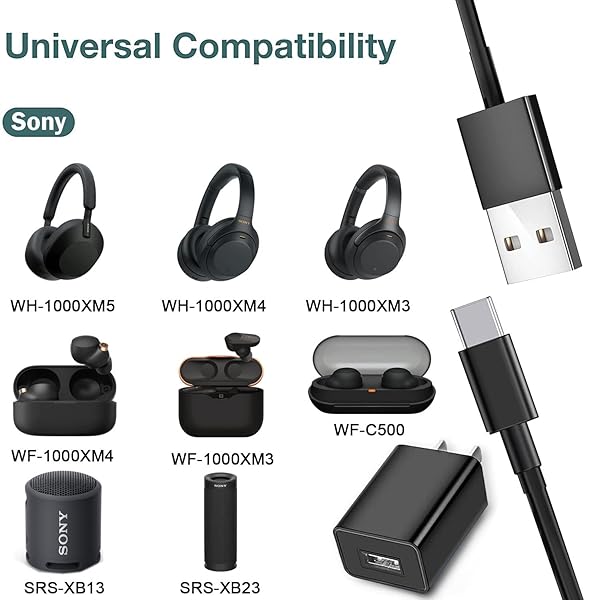 - Charger Cable for Sony WH-1000XM5 1000XM4 1000XM3, WHCH710N, H910N WF-1000XM4 1000XM3, C500 WI-1000XM2 C200 XB400 SRS-XB13 XB23 Portable Speaker Earbud 5V AC Adapter USB C Headphones Charging Cord ...- Sony Headset/Speaker Charger: Quickly charge Sony wireless Bluetooth devices without damaging the battery