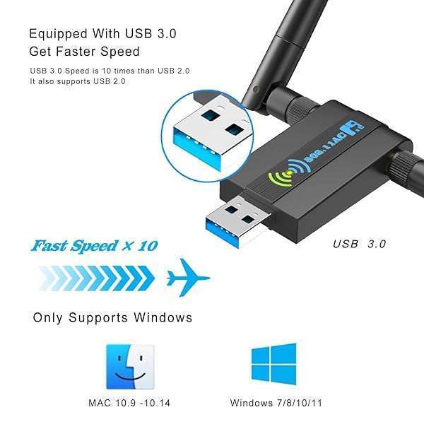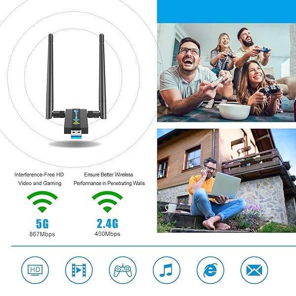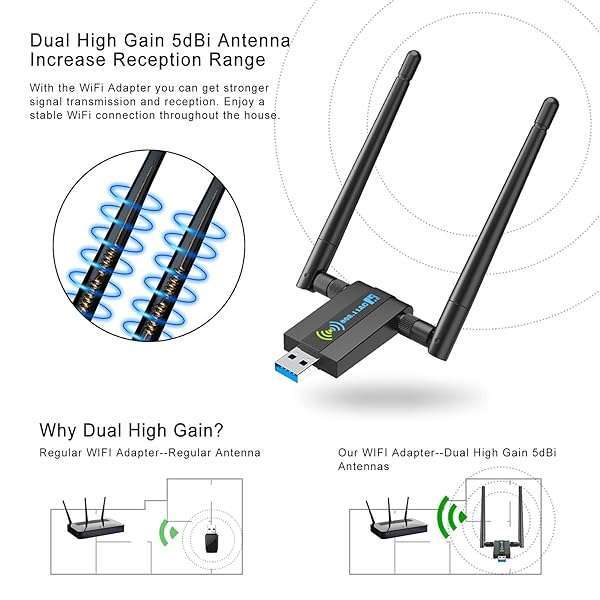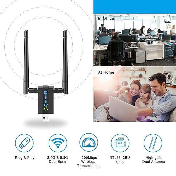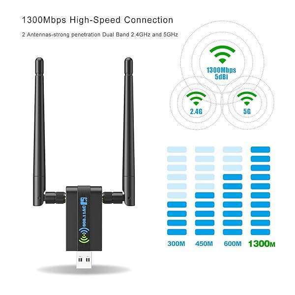 - Wireless USB WiFi Adapter for PC: 1300Mbps 5G/2.4G Dual 5dBi High-gain Antennas WiFi Adapter for Desktop PC, Wireless Network Dongle for Windows11/10/7 provides reliable performance and quality- AC1300Mbps HIGH WiFi SPEED 5G/2.4G - The AC1300Mbps WiFi adapter is a high-speed USB wireless adapter, providing dual-band wireless connectivity with speeds of up to 867Mbps on the 5GHz band and 40...