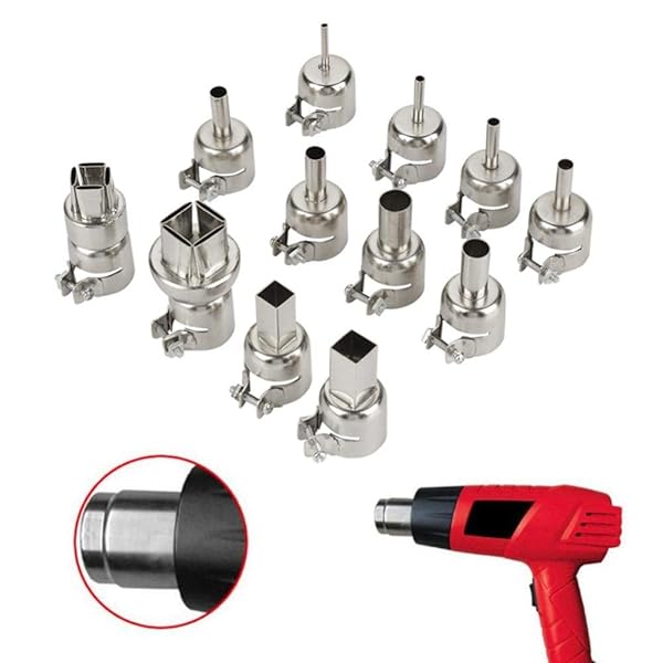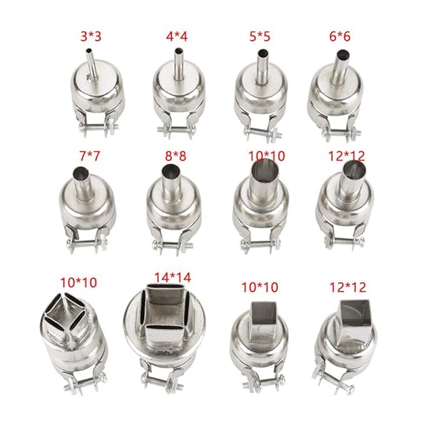 - Hilitand 12pcs Steel Heat Gun Nozzles Kit for 850 Hot Air Soldering Station Repair Tool Accessory - Heat Resisting offers reliable performance and quality- Heat gun nozzles kit is made of steel material, which provides durability and high temperature Fixed with screws, it is very strong, and it is easy to replace- High temperature resistance, no air leakage,versatility.Great parts to replace your old or broken ones