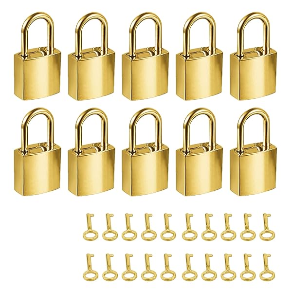 - Mini Metal Lock - 10 Sets Zinc Replacement Pad - Small Locks with Keys, Mirror Glossy (Gold) with reliable performance and quality- WIDELY USE - Mini size great for handbag, small luggage, tiny craft diary, tiny box, etc- 2 KEYS - 10 sets. Each mini lock match high polished padlocks with 2 oval keys- COLOR - Shine delicate lock mini size.- NEW - 100% Brand new and high quality, No rust.