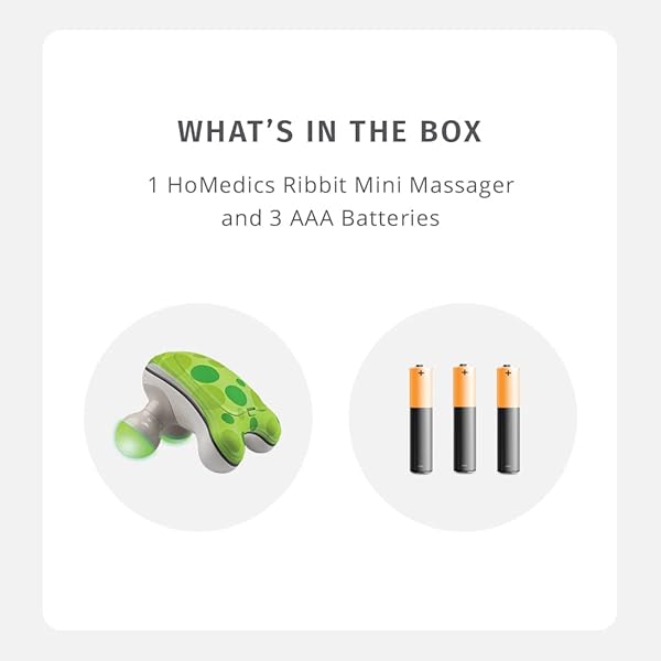 - HoMedics Ribbit Mini Handheld Massager, Vibrating Electric Massager with Comfort Grip and LED Light, Batteries Included, Comes in variable colors, Green, Blue or Pink (Color May Vary) provides reli...- STYLISH MINI MASSAGER Take relaxation into your own hands with HoMedics Ribbit mini handheld massager. Featuring 4 nodes, you can comfortably relax the muscles in your shoulders, legs, neck and mo...