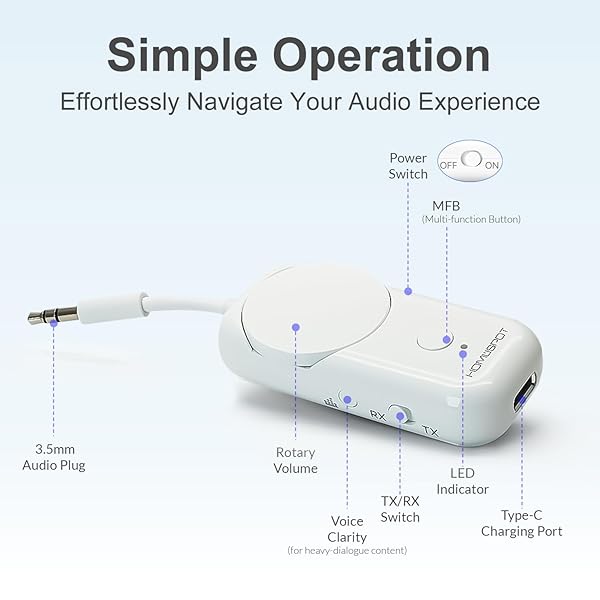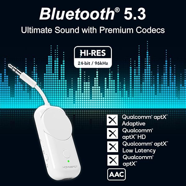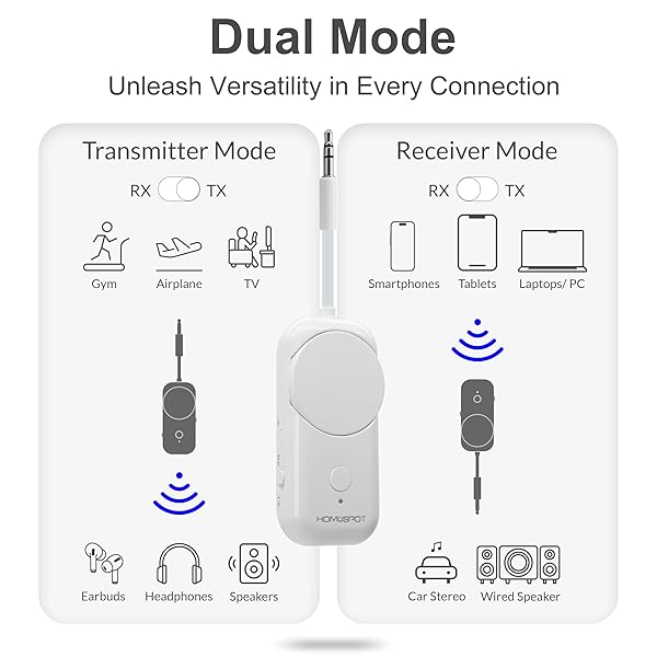 - HomeSpot Bluetooth 5.3 Airplane Adapter, Rotary Volume, aptX Low Latency & Adaptive, 25 Hrs, Use with Any 3.5mm Jack on Airplanes, TVs, Car, Gym, Ideal for AirPods, Headphones and More, White with reliable performance and quality- Distinctive Rotary Volume ControlFeaturing a prominent rotary-style volume knob, our transceiver allows effortless volume adjustment for an unparalleled user experience. Say goodbye to fiddly buttons and enjoy precise control at your fingertips.-