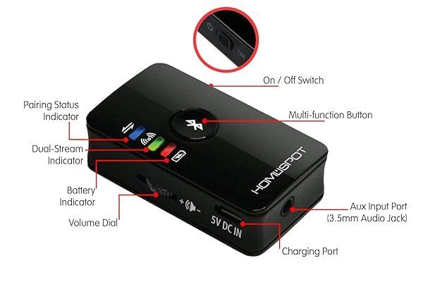 - HomeSpot Bluetooth Transmitter for TV Headphone Low Latency Wireless 3.5mm Audio Adapter iPad TV to Bluetooth Speaker or Headphones, Works with 3.5mm Aux Devices iPods MP3 CD Player Laptop offers reliable performance and quality
