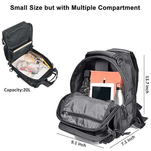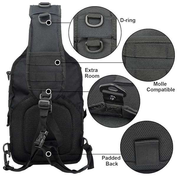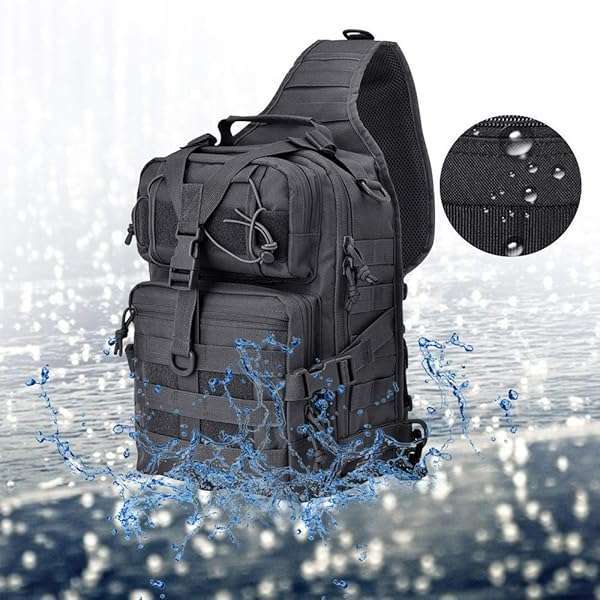 * hopopower Tactical Sling Bag Pack Military Assault Rucksack Shoulder Bag Backpack Chest Pack Handbag Waterproof for Travel Hiking Camping Trekking Exploring Fishing Hunting: high density nylon fabricmade of high density nylon fabric * Making the tactical sling bag durable and waterproof * Can protect your items against water seeping into * Multiple stitching largely enhances the loading capacity against tearing * Large CapacitySize:13.7x9.1x7.1 inch