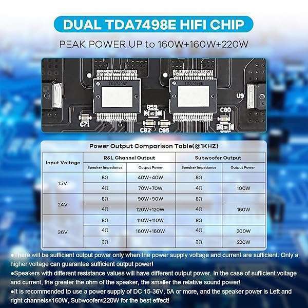 - ZK-HT21 TDA7498E Bluetooth Amplifier Board 160W2+220W Subwoofer 2.1 Channel Audio Receiver Power Amplifier Module with Treble and Bass Control for DIY Speakers: reliable performance and quality- 3-in-1 multi-function input: This power amplifier- Powerful sound field experience: integrated TDA7498E- Wide power supply adaptation range: The power- Compatible with a variety of speakers: the board is