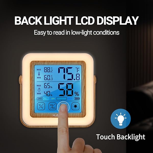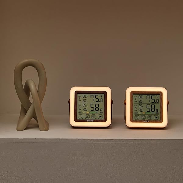 - HuBDIC Digital Hygrometer Indoor Thermometer with Humidity Monitor, Room Temperature & Humidity Gauge for Home, Baby Room, Bedroom, Office, Greenhouse, Cellar, with Portable Night Light (Light Wood) with reliable performance and quality- High Accuracy & Quick Refresh Rate : This product is manufactured by HuBDIC, a specialized brand for thermometers and hygrometers, and features fast measurement and high quality. HT-21 features high accuracy of 23%RH and 1F, which makes it ideal f