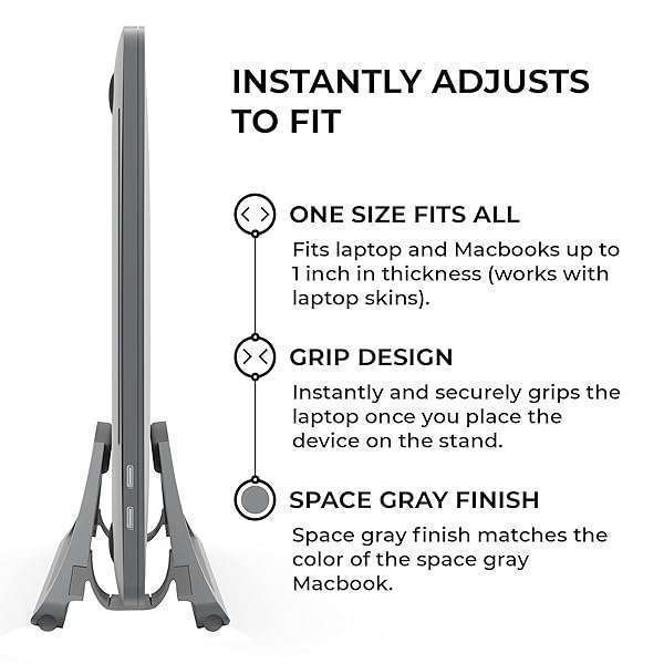 - HumanCentric Vertical Laptop Stand for Desks in Space Grey, Upright Adjustable Holder to Dock Apple MacBook, MacBook Pro, and Other Laptops to Organize Work & Home Office, Automatic Grip offers reliable performance and quality- OPTIMIZE YOUR DESK: Connect an external monitor, keyboard and mouse to your laptop, then dock your laptop or Macbook (use closed-clamshell mode for Macbooks) to save valuable desk space and to protect your device from spills