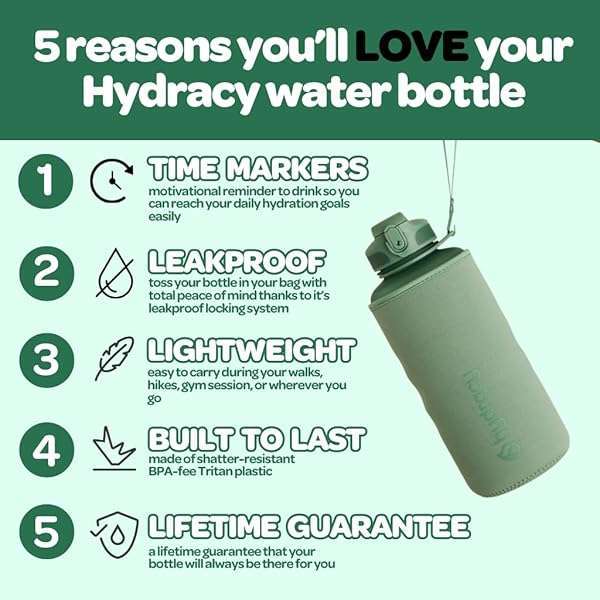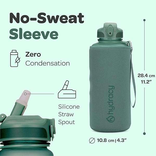 * Hydracy 2L Large Water Bottle, Shatterproof, BPA Free Tritan Plastic, Leakproof, Zero Condensation, With Detachable Carry Strap, Spillproof Lid, Convenient Silicon Spout, Ideal for Gym, Yoga: drink more water 100% leakproof and zero condensation! no more puddle or sweating thanks to its neoprene sleeve * This large water bottle keeps inside all the healthy hydration that your body needs! * MOTIVATIONAL WATER BOTTLE WITH TIMES TO DRINK A quick glance at the intuitive timeline will tell you when