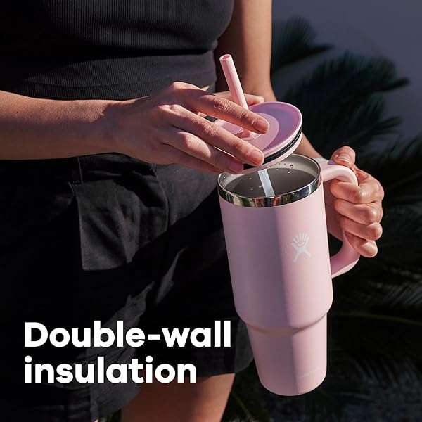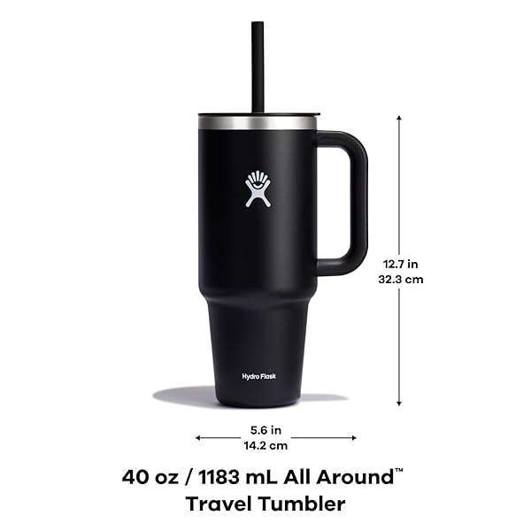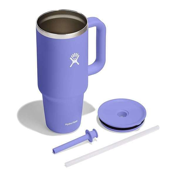* Hydro Flask 40 Oz Travel Tumbler with Handle, Lid and Straw - Insulated Stainless Steel in 40 Oz Lupine: the hydro flask travel tumbler is here to hydrate more and refill less * A very comfortable * Extremely durable handle takes it to the next level * And the perfect size can go anywhere * Even fitting most cupholders