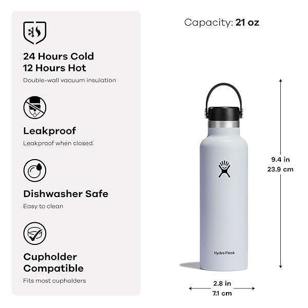 * Hydro Flask Water Bottle - Insulated Stainless Steel - Non Spill, Leakproof in 21 Oz Lupine: stainless steel * Cupholder compatible * Fits anywherethe compact * Reusable * Refillable Standard Mouth insulated water bottle keeps cold drinks cold for 24 hours