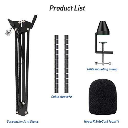 - SoloCast Boom arm for HyperX, Microphone Stand for HyperX SoloCast Mic arm Upgrade C Desk Clamp, 2 Cable Ties, Mic Cover Compatible with HyperX SoloCast by SUNMON offers reliable performance and quality- Perfect Mic Stand- Suspension boom arm stand fit your HyperX SoloCast suitable, you can easily adjust the mic to the suitable angle or height to show your perfect voice