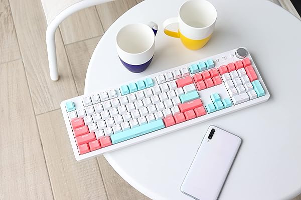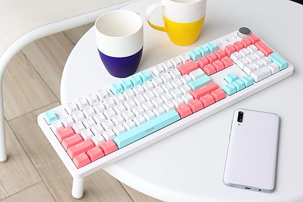 * i-rocks K73M Mechanical Gaming Keyboard with Media Control Knob, 107 Keys, PBT Keycaps, Multimedia Hotkeys, Detachable USB-C Cable (Cherry MX Brown Switches, Mint Peach): hotkeys & smart wheelhotkeys make your web browsing * Media playback * And application access faster than before * With Smart Wheel you can customize your wheel volume * Scrolling