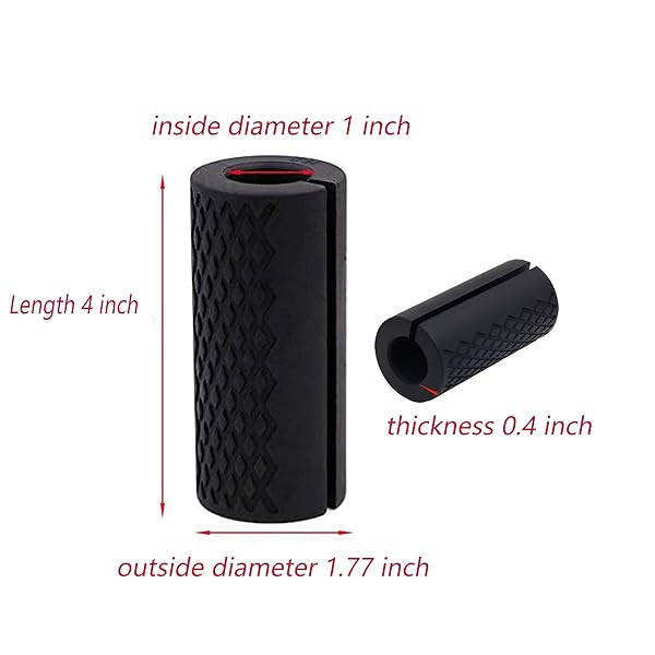 * IADUMO Weight Bar Grips,Barbell Grip for Dumbbells,Thick Dumbbell Handles Grips for Weight Lifting Cable Attachments and Fitness Training (Black): fits most barsplease check the product size before purchasing.our barbell grips:length: 4 inch * Outer diameter: 1.77 inch * Inner diameter:1.0 inch,thickness:0.4 inch.Our thick bar grips fit virtually all barbells * Dumbbell handles * Weight bars