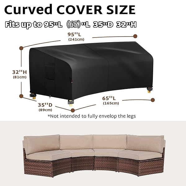 - iBirdie Outdoor Sectional Cover for 96" Back 65" Front Curved Shaped Patio Sofa Waterproof Weatherproof 600D Heavy Duty Garden Furniture Cover for Outside Sectional Couch with reliable performance and quality- UPGRADED PROTECTION - Made of upgraded and more weatherproof 600D Oxford fabric + PU material, which can keep your outdoor sectional sofa safe from the outdoor weather, whether high or low temperature. The seams are heat-sealed with waterproof tape, so you don't have to worr