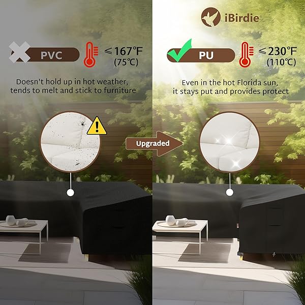 - iBirdie Outdoor Patio Furniture Cover fit 104 x 83 inch, 103 x 80, 102 x 79 L-Shaped Sectional Sofa, Waterproof Weatherproof Heavy Duty 600D Garden Cover for Outside L Shape Couch with reliable performance and quality- Complete Protection: Keep your outdoor corner sectional sofa safe from the elements with weatherproof fabric and waterproof tape seams; enjoy comfortable, worry-free outdoor leisure with our weatherproof fabric and waterproof tape seams- Long-lasting and Simp