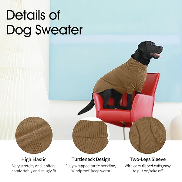 - IECOii XXXL Dog Sweater,Warm Dog Sweaters for Extra Large Dogs Girl Boy,Stretchy & Cozy,Turtleneck Knitted Pullover for Pet Wear On Holiday,Easy On Doggy Sweatshirt for Labrador (Camel,XXXL) offers reliable performance and quality- XXXL Dog Sweater:Please priority follow the chest size. Size XXX-LARGE, fits 31.5" chest,23.6" back, 20.5''neck;Suit for large size dogs like German Shepherd, Golden Retriever, Labrador,Alaskan Malamute etc