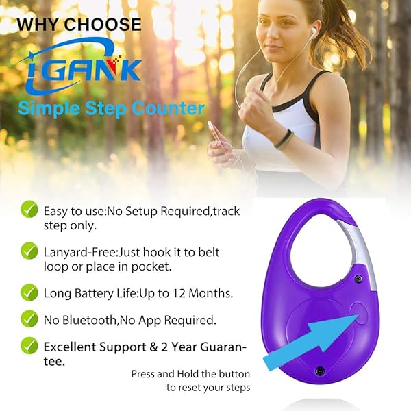 - iGANK Simple Walking Pedometer 3D Step Counter for Men Women Kids (Purple) offers reliable performance and quality- Track Your Steps accurately :The PD301 walking 3D pedometer uses the professional 3D Tri-Axis sensor to track your daily activities- A Pedometer only Track Steps:Non-Bluetooth,No Time,No complicated settings,Just take it and start your walking!